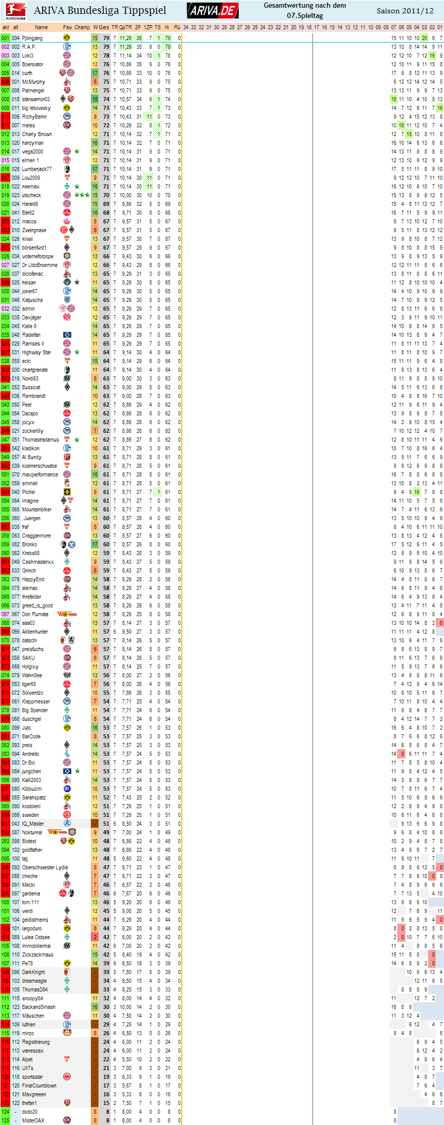 Hier der Überblick über die Gesamtwertung nach dem 7.Spieltag..