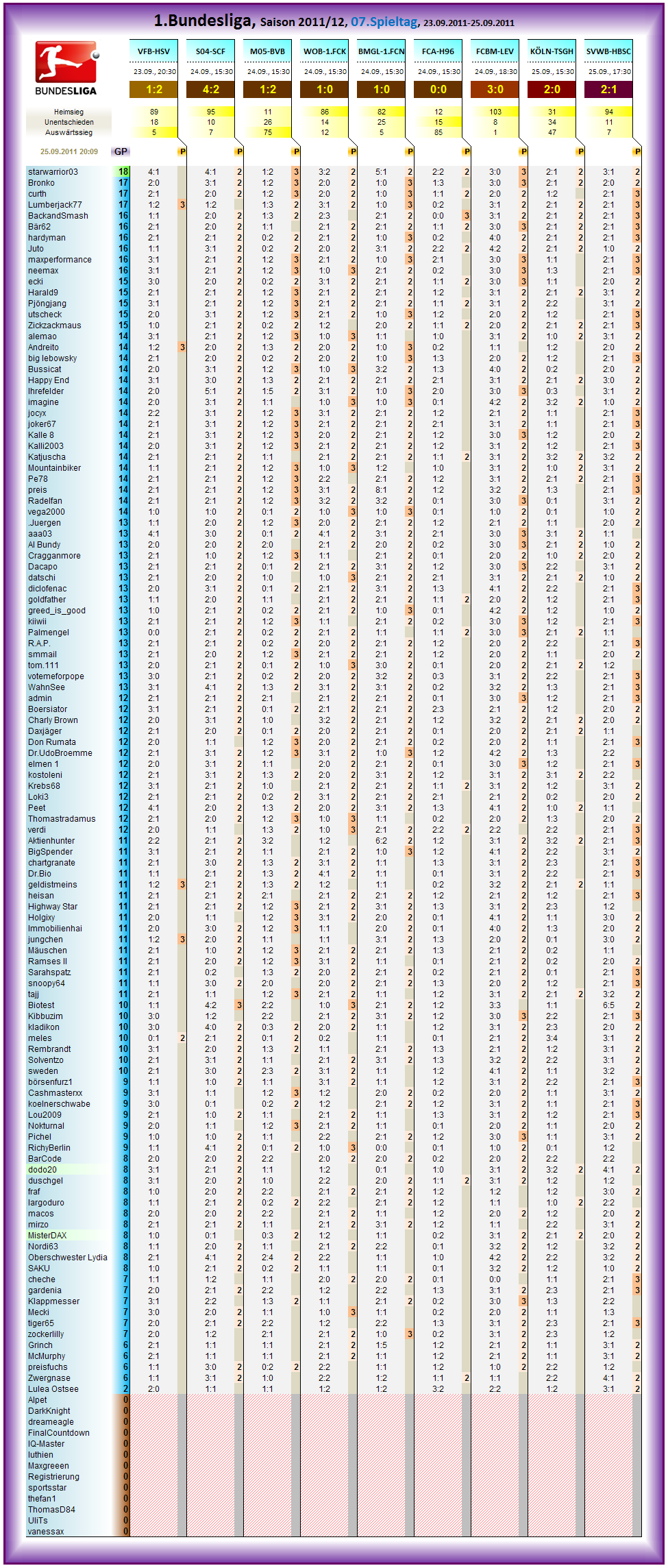 Gespielt wird der Spieltag vom 23.09.2011 20:30 - 25.09.2011 17:30..