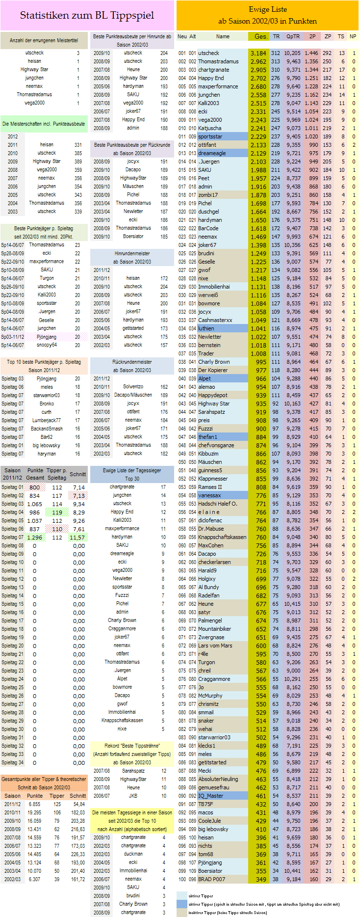 Insgesamt konnten sage und schreibe 83 Tipper zweistellig Punkten - REKORDAUSBEUTE INSGESAMT! (sieht man dann im Statistikblock)