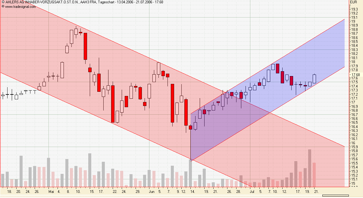 aussichtsreicher Wert. Bei Überschreiten des Widerstandes um 8 Euro gibt es wohl eine Fortsetzung des up trendes. Ziel zunächst etwa 8,45 Euro. Ich tippe auf ein seitliches Anlaufen des Zielkorridors über den Sommer. Im August Dividendenzahlung mit dem erneuten Test der Unterstützung verbunden. Danach könnte es durchaus weiter hoch gehen im trend seit März 2003.