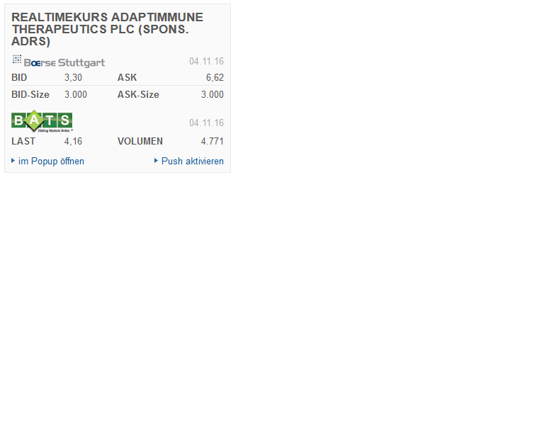 Vorherige Kursziele zu Anfang des Jahres lagen noch bei 17 Dollar und zuletzt (10.10.2016) bei 10 Dollar. Man muss vielleicht noch wissen, dass BofA Marktmacher für Adpatimmune ist und die ADAP ADR verwaltet.