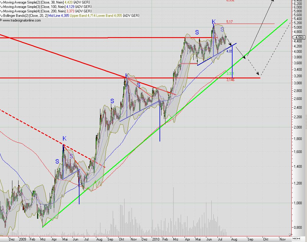 heute im News-Ticker: Dt.Bank hebt Kursziel von 5 auf 6,50€. Also jetzt einsteigen zu 4,80, denn der Kurs wird wieder so stark steigen wie damals von ca. 2,50 auf 4,00. Wir sind lange seitwärts gelaufen und die Q2 Zahlen und Ausblick haben eigentlich weiter positive Stimmung für die Aktie gegeben. Der DAX und Dow J. kratzten an Ihren Jahres-Höchstständen , da hat ADVA noch einiges Potential zum steigen.