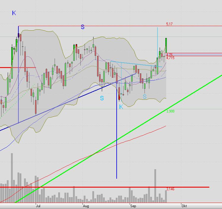 Die 5,00 EUR sind nicht weit, Montag vielleicht die 4,80 (oder gar die 5,-?).