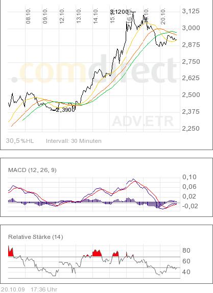 ADVA Optical hat heute erneut einen Auftrag eines französischen Netzbetreibers gemeldet. Der Chart ist nach wie vor vielversprechend: Im Anschluss an die laufende Konsolidierung ist eine Fortsetzung der Aufwärtsbewegung wahrscheinlich.
