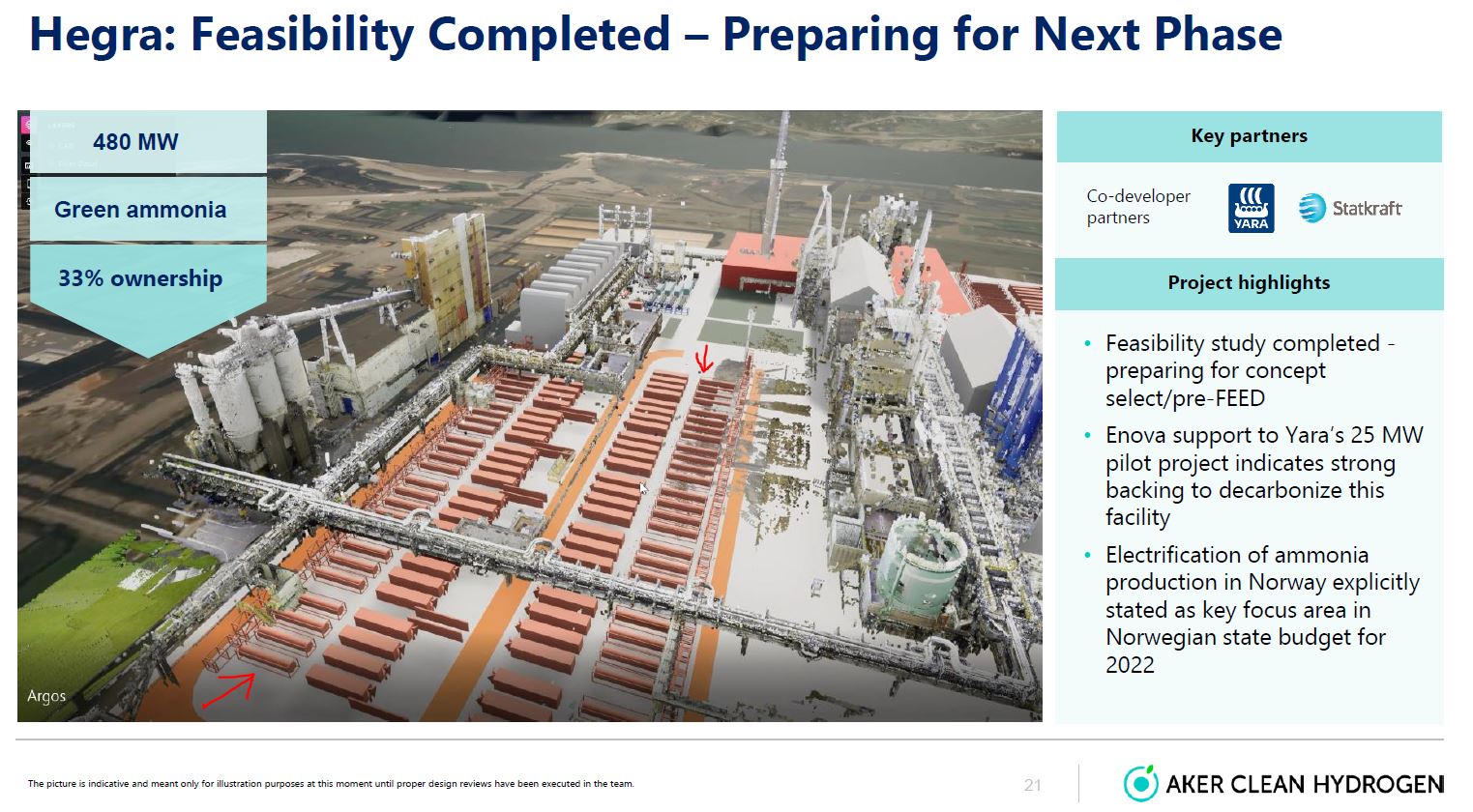 Für das 480 MW green Ammonia wurde «HEGRA» (Abkürzung für HErøya GReen Ammonia) gegründet. Hegra gehört zu Yara, Aker Clean Hydrogen und Statkraft, die jeweils 1/3 besitzen.