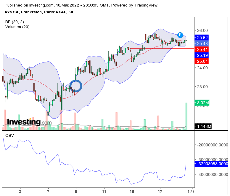 Der Chart von Axa sieht spannend aus. Leider war das Handelsvolumen nicht sehr hoch. Der Ausbruch steht dementsprechend noch auf recht wackeligen Beinen.