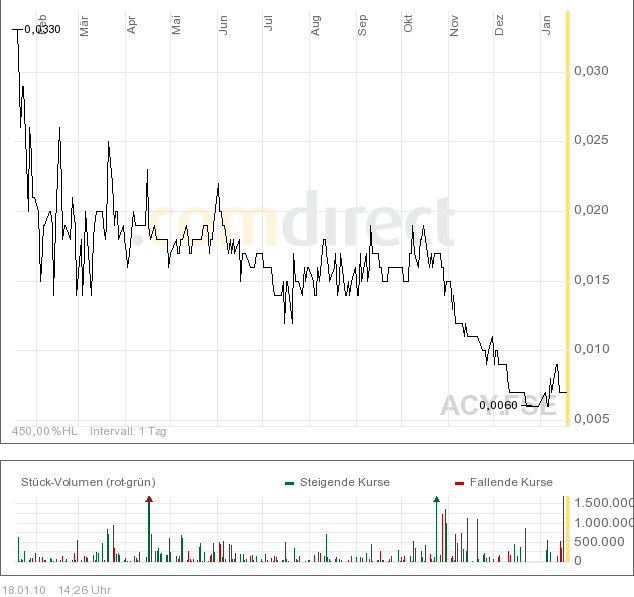 Aktie fast auf Alltimelow welches bei 0,006 Euro