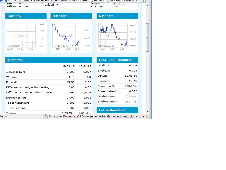Heute morgen gingen schon welche (950000 Stück) zu 0,008 Euro über den Tisch.