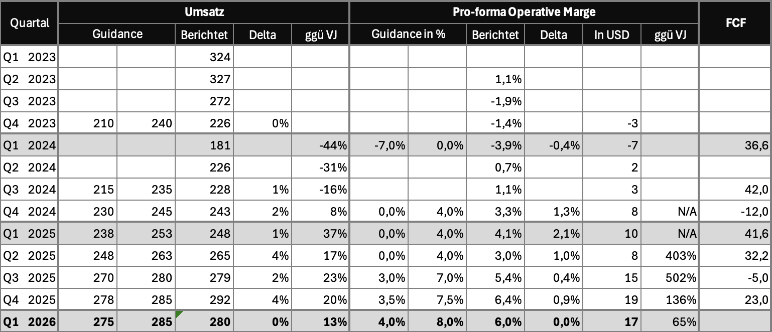 Wenn ich etwas Negatives finden müsste, dann wäre es, dass es bei der Marge einen Schnaps mehr hätte sein können, sprich: wenn man schon die Umsatzguidance übertrifft, hätte man auch bei der Marge am oberen Ende ankommen können.