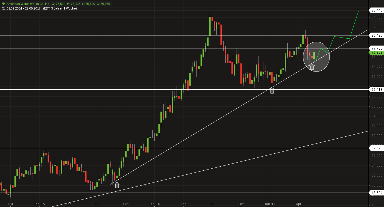 Ein eventueller Boden könnte im Bereich 73-74 $ gefunden worden sein, wichtig ist das die 77 $ als Nächstes überwunden werden. Dann steige ich auch ein ;-))