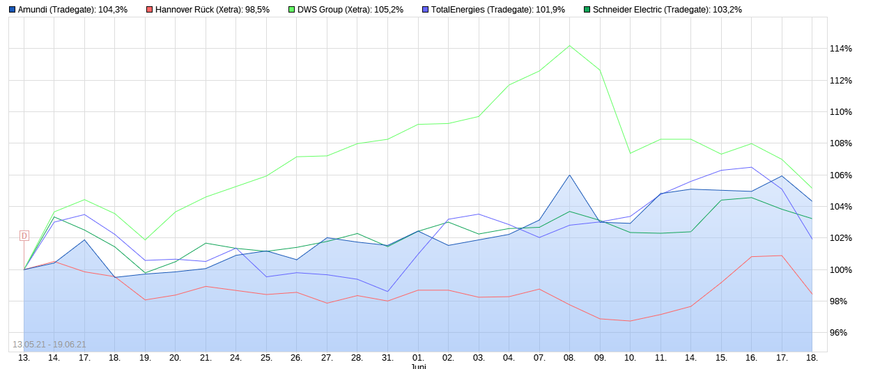 Amundi, Hannover Re und Schneider waren am Freitag sehr stabil und beruhigen das Tradergemü­t. Für freie Mittel wären die jetzt meine Favoriten.­ Spekulativ­ habe ich TotalEnerg­ies, Elis und VOW ASA mir zugelegt. Mal sehen.