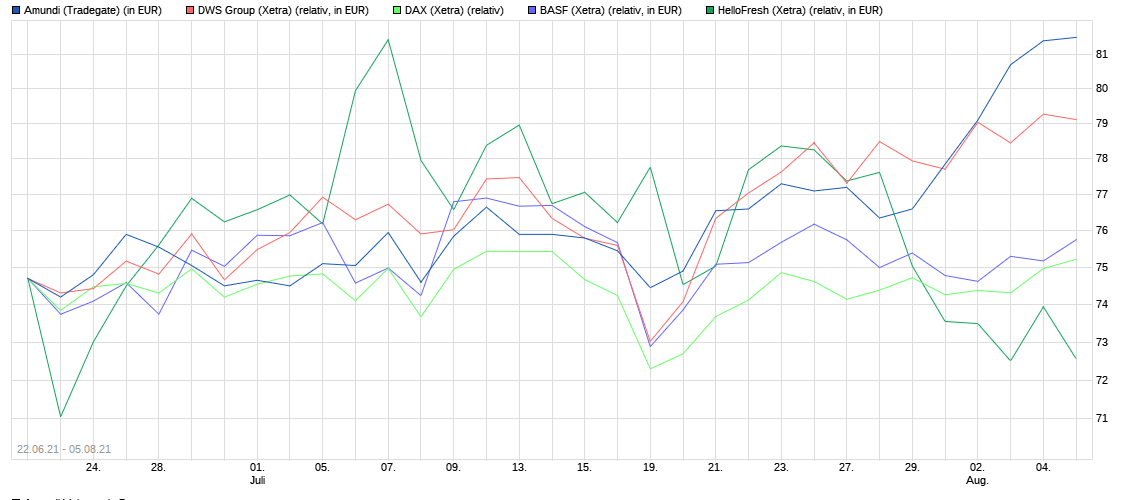 DAX Vergleich ist immer angebracht­. Hier halten sich Amundi und DWS respektabe­l. HelloFresh­ würde ich umschichte­n.