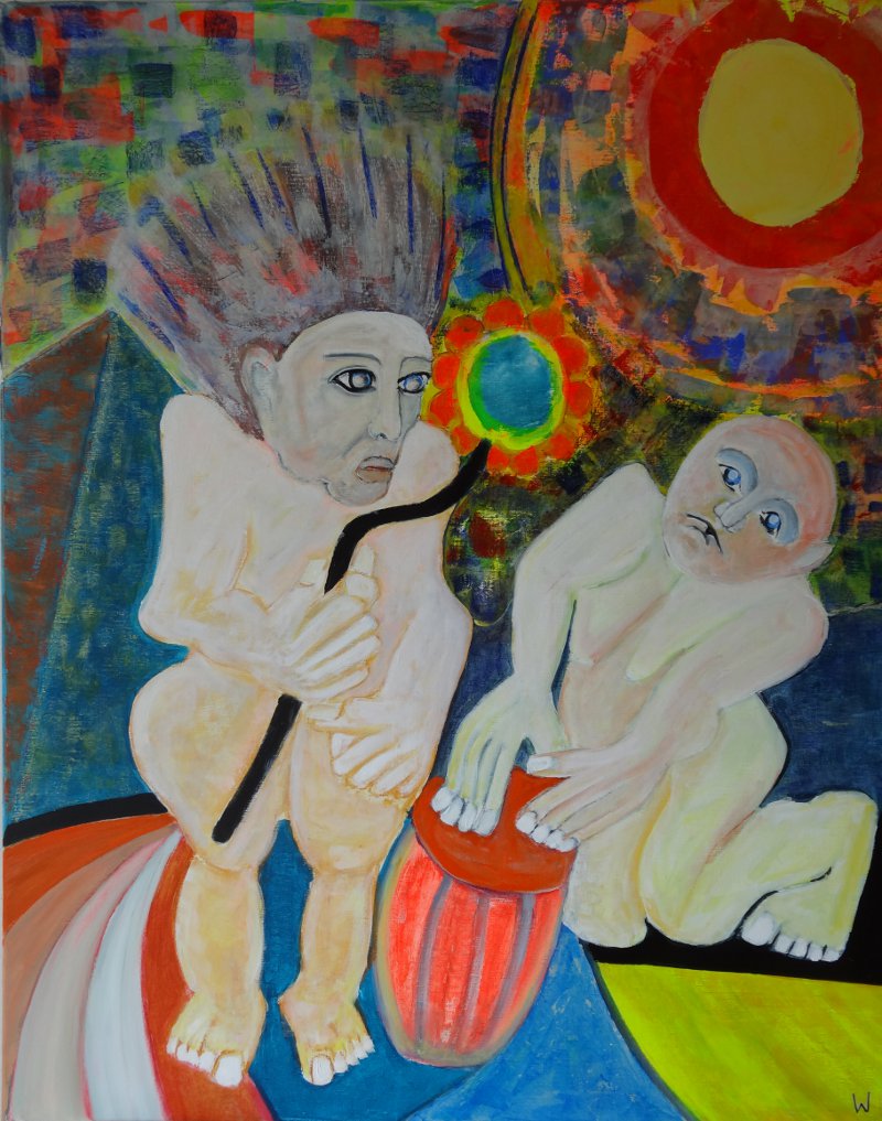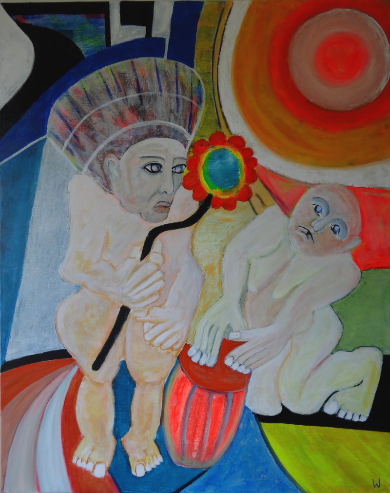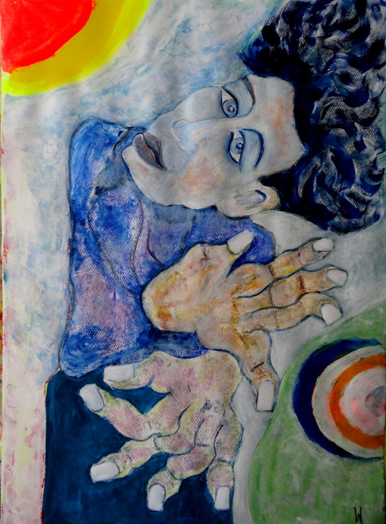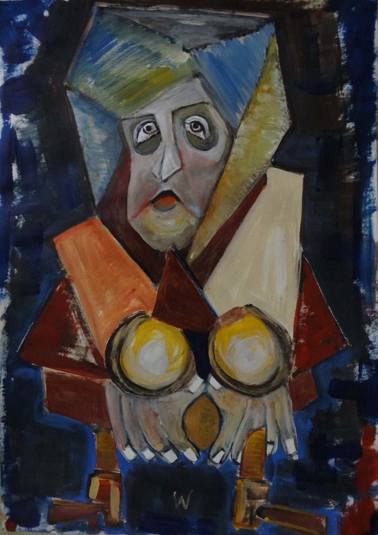 Frierender Obdachloser, in leicht abgewandelter Form eines Suprematismus, gemalt!