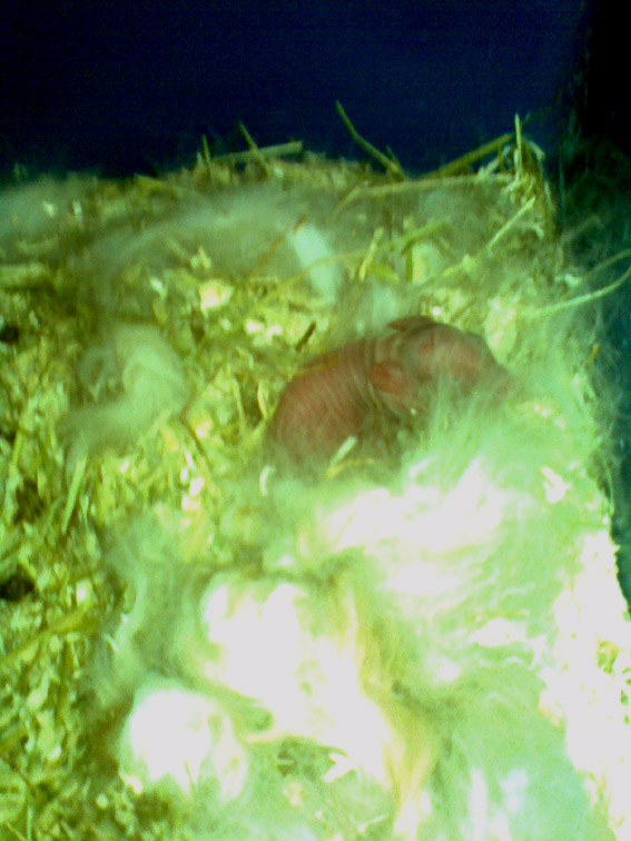 das Baby von den beiden hier - eins von vieren, die unter den ganzen ausgerupften Haaren liegen...
