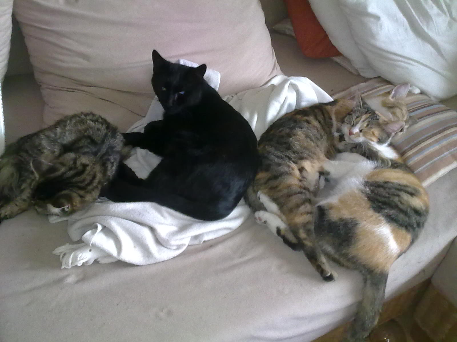 Jau, die graue is ne Norwegische Waldkatze und die beiden Bunten sind Maine-Coon­ Waldkatze-­Mix...