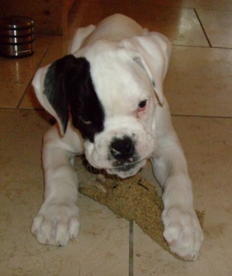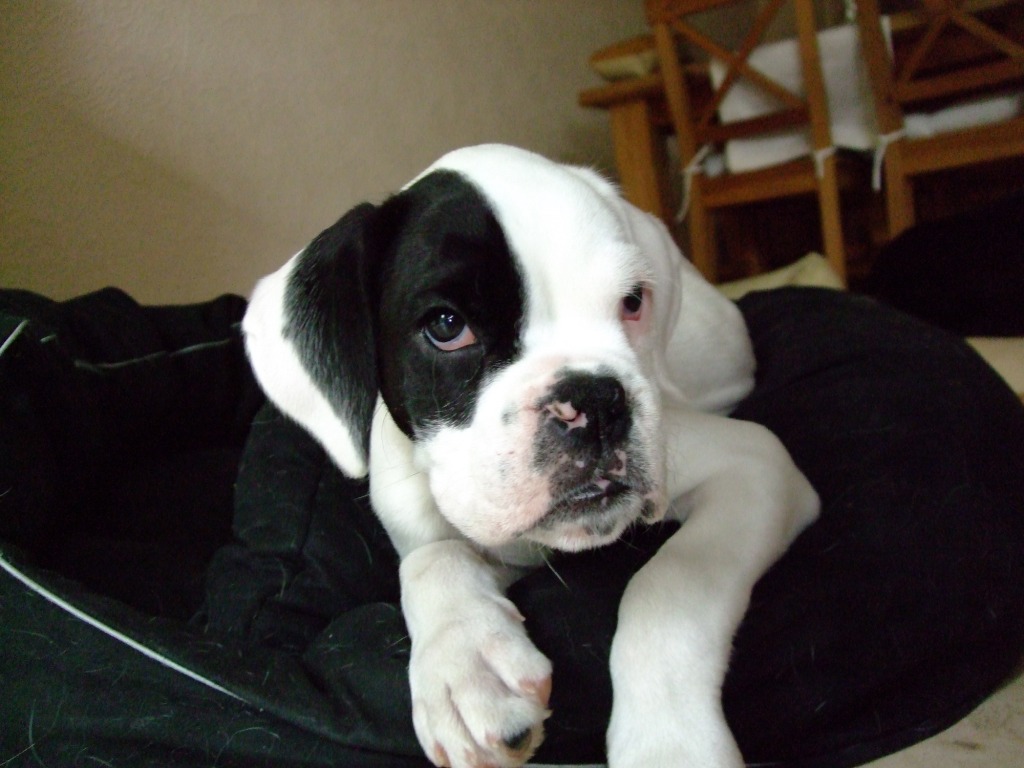 Der hat Zuwachs bekommen ... :-) Ginger, ein 8 Wochen altes Boxer-Weib­chen und unsere # 3, frech wie Rotz und lässt sich von den Großen nicht die Butter vom Brot nehmen