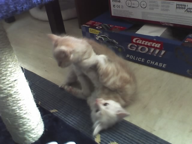gibt's da eigentlich nicht (ausser meine Wenigkeit). So richtig gestritten haben die beiden noch nie. Wenn einem von den beiden am anderen was nicht passt, dann wird kurz geknurrt und die Sache ist geklärt, weil der Gegenüber nachgibt.
