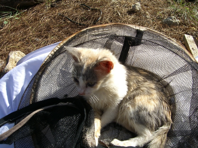 die sich gleich in den Imkerhut legte, nachdem ich ihn abnahm. Sie hat mich geliebt, ich hätte sie am liebsten mit nach Hause genommen. Aber von Korfu? Ging leider nicht :-(