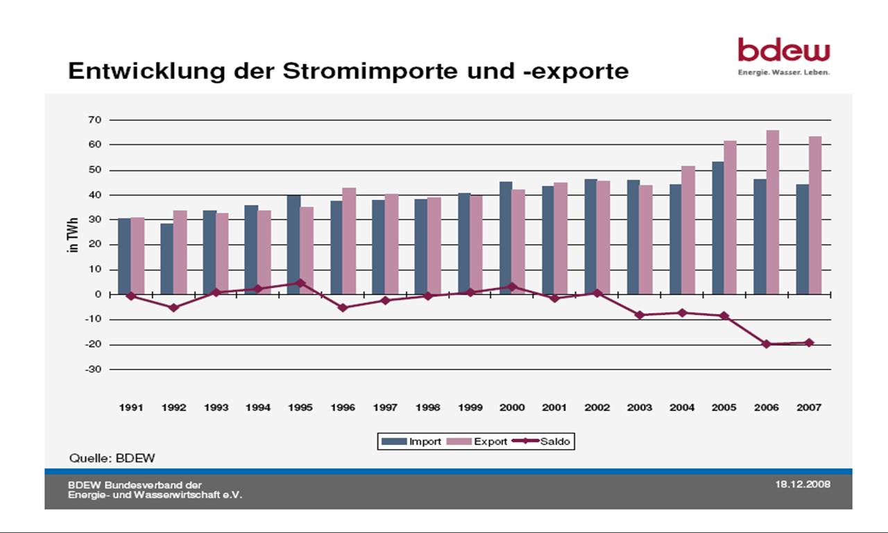 in Deutschland wird momentan viel zu viel Strom produziert­, deshalb die Rekorde beim Stromexpor­t (insbesond­ere in Richtung Frankreich­ im Winter, weil Franzosen mit Strom heizen). Es ist Zeit, das ein paar Atommeiler­ schnellste­ns vom Netz gehen.