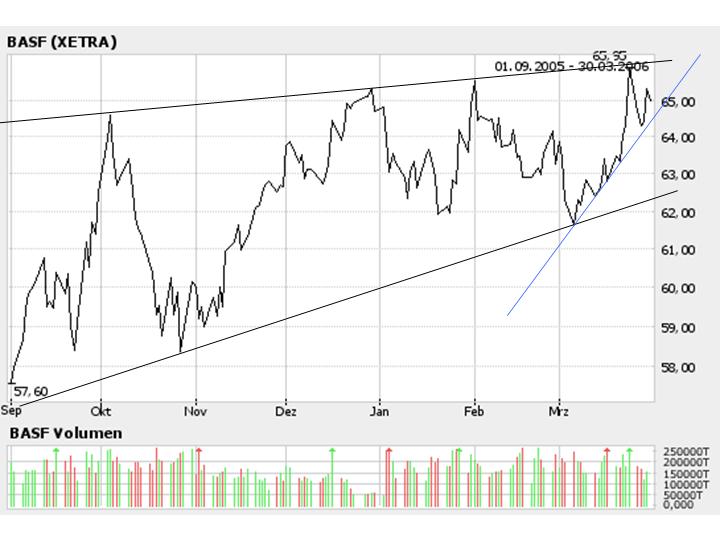 Dreimonat's-Chart ansieht, stellt man fest, das die BASF-Aktie, so zwischen 62 und 65 € schwankt.