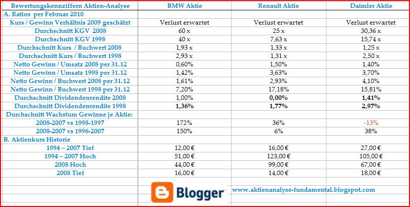 also der Text von Wissen.de sieht aus wie ein einfacher super langer Werbetext. Daran ist jetzt nicht wirklich zu erkennen ob BMW / Daimler oder sonstwas kaufenswert sind. Und wie die BMW Aktie zu sehen ist - ob Sie teuer oder billig ist steht da wirklich nicht drin. Ich zweifle ob das überhaupt unabhängig ist bzw. uns Geldanlegern überhaupt was bringt dieser Werbequark. Ich kann damit zumindest nicht allzu viel anfangen. Das sieht doch echt voll, voll nach Werbung aus. Und es werden so gut wie keine Finanzzahlen genannt. Wo soll der Gewinn stehen in 3 Jahren ? in 5 Jahren ? dort wird alles mögliche über Modelle geredet und über Zukunftsperspektiven. ICh will nicht wissen wieviel Unsinn Daimler schon erzählt in den letzten 20 Jahren von den tollen Perspektiven. Und wie toll die Autos auch gebaut wurden. Genutzt hat es uns Anlegern gar nix :(