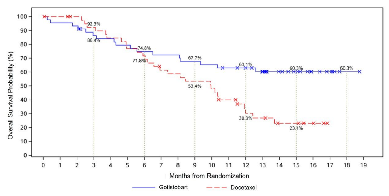 Dass mit BNT316 63,1 Prozent der Patienten noch leben und mit SoC nur 30,3 Prozent, ist ein statistisch sehr starkes Signal. Sowohl das Kaplan-Meier-Diagramm als auch PFS zeigen, dass die konventionelle Chemotherapie zwar etwas schneller anfängt zu wirken, aber die Immuntherapie BNT316 mittel- und langfristig viel stärker das Überleben sichert. Diese Verzögerung ist typisch für die meisten Immuntherapien. Gotistobart zeigt das typische Muster einer verzögerten, dafür anhaltenden Immuntherapie-Wirkung.