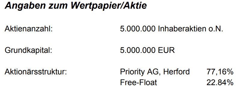 Übrigens: der Großaktionär hat angekündigt, dass es seinen Anteil von 95 % auf 80 % abbauen will.