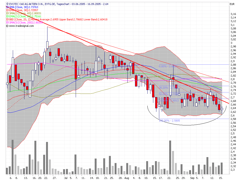 Ich bin heute mit einer grösseren Position in Evotec eingestiegen. Leider habe ich bei dieser Aktie nur nach gefühl gekauft. Ich sehe aber bei dieser Aktie ein Verlustrisiko von ca. 10% (2,45) und eine Gewinnchance von ca. 30% (3,5).