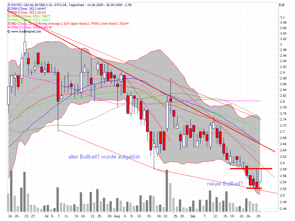 bei Evotec. Gestern noch bis 2,56 runter geteaxt worden. Sie setzen zur nächsten Abwärtswelle an. Die dürfte dann bei 2,4 enden.