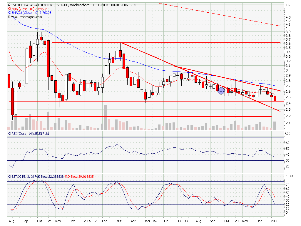 Gestern kurz vor Börsenschluss überraschte die Evotec AG die Börsianer mit der Meldung, die Umsatzplanungen für 2005 zu übertreffen. Zuvor war die TecDAX-Aktie trotz des freundlichen Marktumfeldes unter Druck geraten. „Trader“ spekulieren auf eine Gegenbewegung.