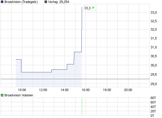 das Geschäftsprofil von Broadvision an,dann erklärt sich vieles. Das Unternehmen entwickelt, produziert und vertreibt ein integriertes Software-Paket mit kombinierten Anwendungen zur Durchführung von E-Commerce Interaktionen und Transaktionen. Des Weiteren bietet das Unternehmen spezielle Software-Lösungen für Online-Finanzdienstleister an. Die BroadVision-Produkte werden weltweit in Unternehmen und Regierungsbehörden eingesetzt, um über das Internet und mobile Endgeräte Waren, Services und Informationen zu kaufen, zu verkaufen oder auszutauschen. Die Anwendungen sind vor allem für Kunden mit einem überdurchschnittlich hohen Transaktionsvolumen interessant. Am Ende bleibt es natürlich eine reine Spekulation,wie mit jeder anderen Aktie auch.Eine Nachricht hab ich gefunden,wo Broadvision mit Facebook in Verbindung gebracht wird.