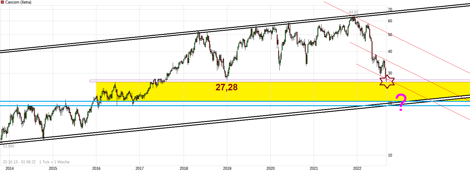 Wenn man sich jetzt nicht schnellstens wieder über die zuvor stützende Region um 27,28€ hocharbeitet, dann fürchte ich es geht hier erstmal weiter südwärts bis tief in den unteren 20er Bereich. Also mal abwarten was der Markt aus der aktuell technisch heiklen Situation macht.
