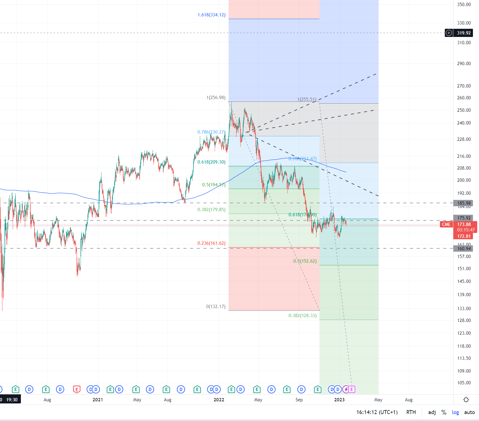 D. h. die Achse der Zinsschritte 0,75 + 0,75 + 0,75/ altern. 0,5 + 0,5% Erhöhung, wie der Markt glaubte eingepreist zu haben, ist gar nicht so relevant. Ich sehe beim stufenweisen Luftablassen noch einen größeren Abschwung kommen. Danach gehen zuerst die Rohstoffe und Terminkontrakte wieder hoch. Dann die Finanzmarktplatzbetreiber.