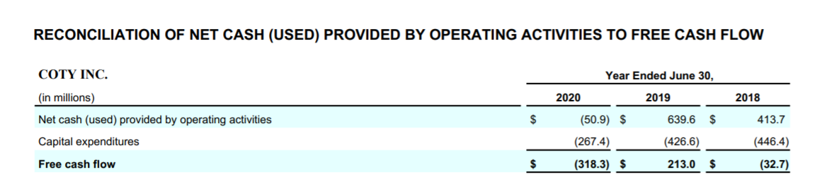 Im letzten Kalenderjahr hatte Coty einen positiven FCF.