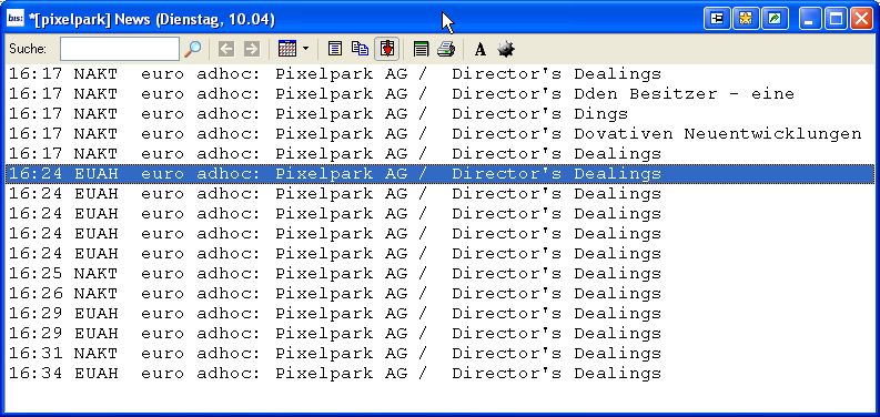 den aktuellen Kursverlauf nachzuvollziehen, ich freue mich aber trotzdem, werde wahrscheinlich noch mal auf diesem Niveau etwas in Pixelpark umschichten.