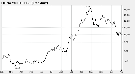 HONGKONG (dpa-AFX) - Der Mobilfunkanbieter China Mobile verzeichnet ein ungebrochenes Wachstum. Die Kundenzahl sei im Dezember um 6,6 Millionen auf 369,3 Millionen geklettert, teilte die Gesellschaft am Montag in Hongkong mit. Damit erhöhte sich die Kundenbasis im vergangenen Jahr um rund 68 Millionen, womit China Mobile der nach Kunden größte Mobilfunkanbieter der Welt ist. Branchenprimus nach Umsatz bleibt die britische Vodafone-Gruppe./FX/mur/wiz