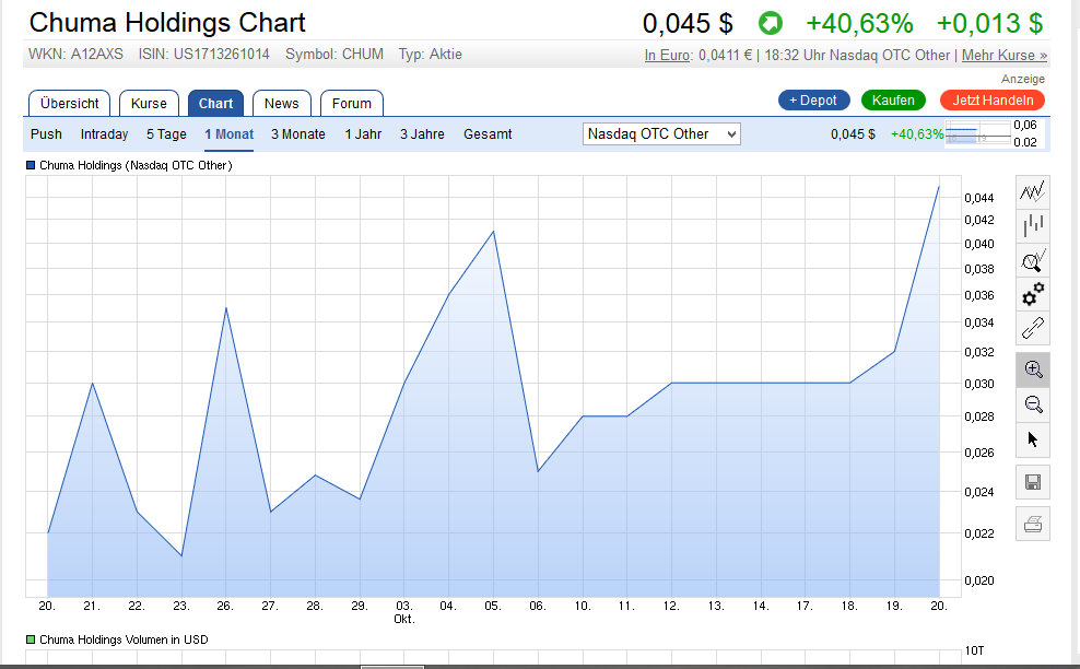 Chuma H. stieg gestern bei den Amis noch auf 0,0523$..
