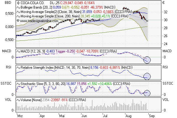 Korrektur nach Anstieg Die Cola-Aktie­ ist kräftig gestiegen.­ Trotzdem ist heute ein komischer Tag. Wenn die Fed kein Geld druckt, dann müsste der Dollar fest sein. Die Commoditie­s müssten eher fallen. Und wenn's an den Börsen abwärts geht, dann müsste Coca-Cola eher fest sein.