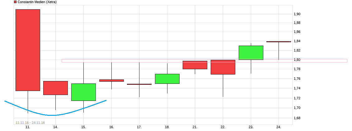 Ismaning, 5. Dezember 2016 - Der Vorstand der Constantin Medien AG wurde durch Schreiben vom 5. Dezember 2016 darüber informiert, dass die KF 15 GmbH, die DHV GmbH und Herr Dr. Dieter Hahn beabsichtigen, um weiteren Schaden durch die Aktionärsstreitigkeiten von der Constantin Medien AG und der Highlight Communications AG, Pratteln, Schweiz abzuwenden, sämtlichen Aktionären der Constantin Medien AG für einen Preis pro Aktie in Höhe von EUR 2,30und, mit Ausnahme der Highlight Communications AG-Aktien der Constantin Medien AG sowie der Eigenen Aktien der Highlight Communications AG, sämtlichen Aktionären der Highlight Communications AG für einen Preis pro Aktie in Höhe von EUR 6,00entsprechend den anwendbaren gesetzlichen Regelungen jeweils ein Übernahmeangebot zu unterbreiten. Die Unterbreitung dieser Übernahmeangebote durch die KF 15 GmbH, die DHV GmbH und Herrn Dr. Dieter Hahn stehen jedoch unter den Bedingungen, dass (i) die KF 15 GmbH, die DHV GmbH und Herr Dr. Dieter Hahn kurzfristig eine Due Diligence Prüfung durchführen können und (ii) die Stella Finanz AG, Glarus, Schweiz das Darlehen mit der Constantin Medien AG rückabwickelt und die zu ihren Gunsten verpfändeten Aktien an der Highlight Communications AG auf ein Depot der Constantin Medien AG überträgt. Der Vorstand der Constantin Medien AG wird über die Zulassung der vorgenannten Due Diligence Prüfung bei der Constantin Medien AG beraten, weist jedoch darauf hin, dass über die Zulassung einer Due Diligence Prüfung bei der Highlight Communications AG deren Verwaltungsrat entscheidet. Ferner weist der Vorstand darauf hin, dass sich die Stella Finanz AG trotz des beendeten Darlehensvertrags bisher immer noch weigert das Darlehen mit der Constantin Medien AG rückabzuwickeln und die 24.752.780 zu ihren Gunsten verpfändeten Highlight Communications AG-Aktien zurückzugeben.
