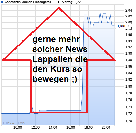 Die neue Strategie der Constantin Medien erachte ich als vielversprechend,die Kooperation mit TATA Communication (einem indischen Konzern mit Millardendollarumsatz) verheisst eine interessante Vermarktungsplattform für Constantin Medien Produkte....