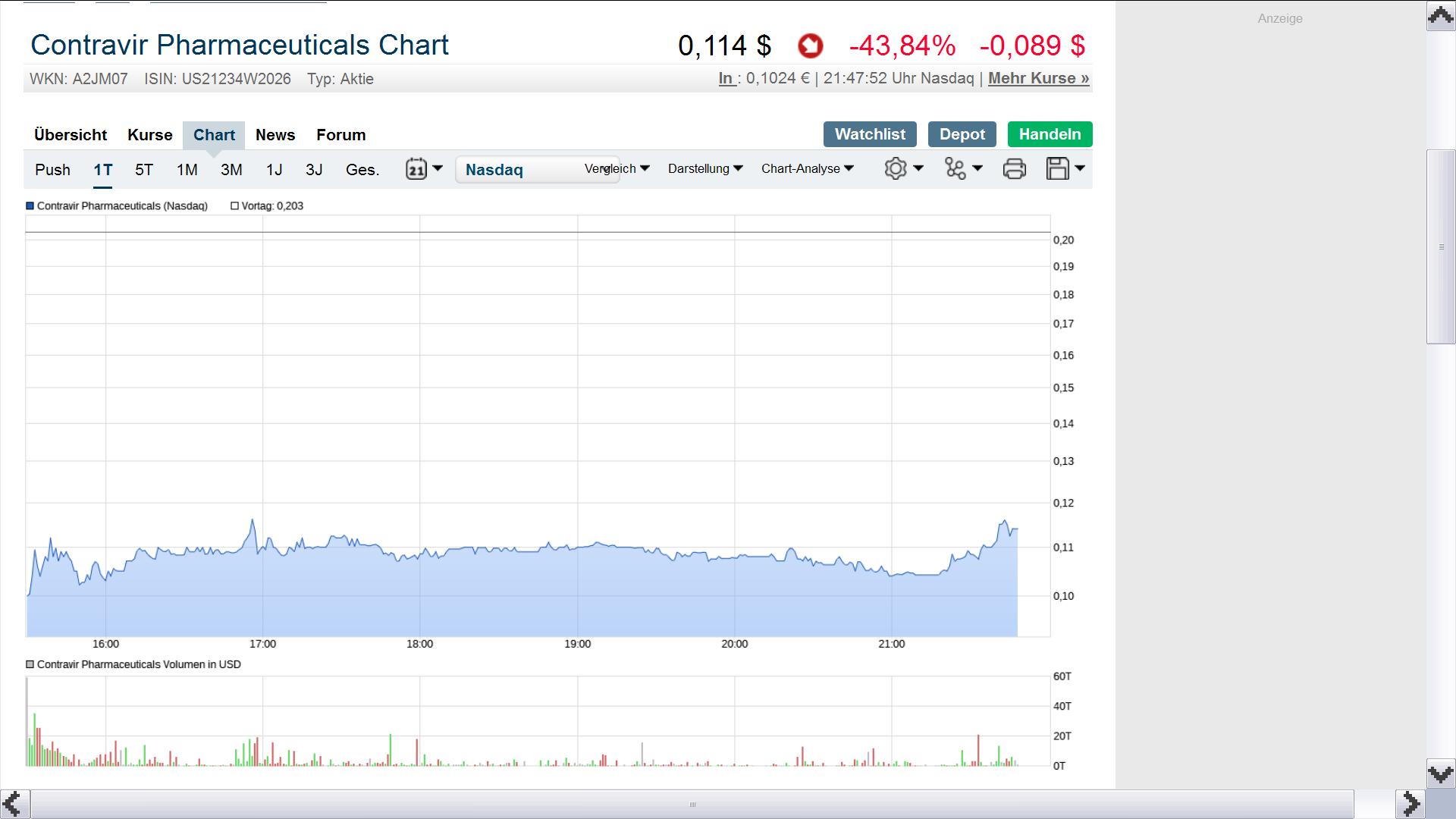 liegt Contravir heute auf Platz 3 der Nasdaq Composite Top-Liste.