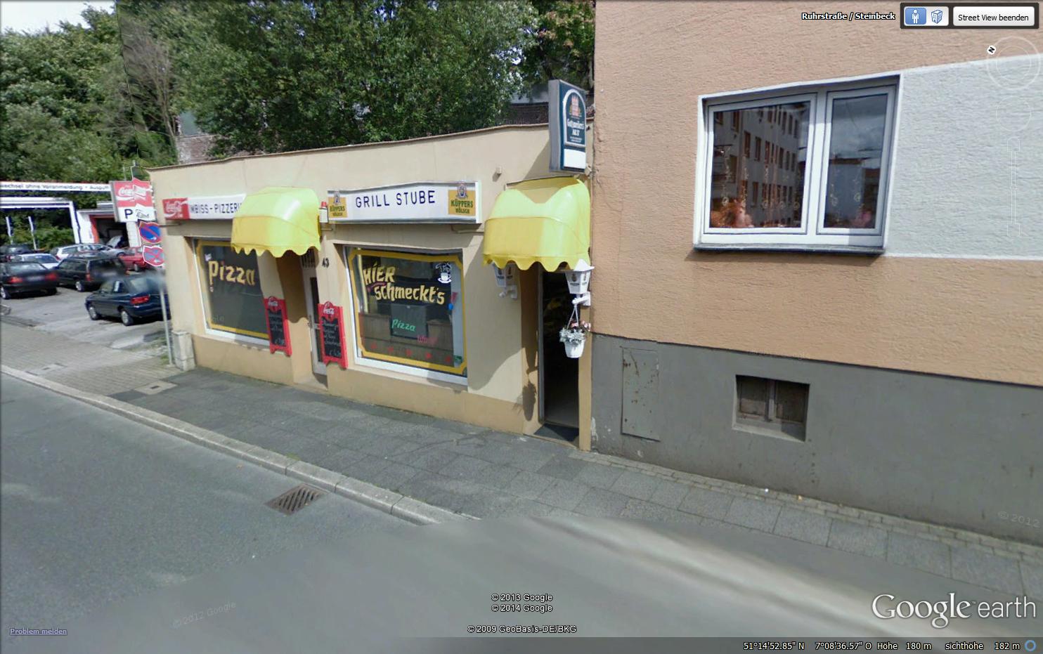 Die Grillstube in Wuppertal-Steinbeck, Cronenberger Straße 43. Schon von außen sehr vielversprechend: Man beachte die alten Reklameschilder für Küppers Kölsch und Gatzweilers Alt - uralte Traditionsbiermarken, die es leider schon nicht mehr gibt.