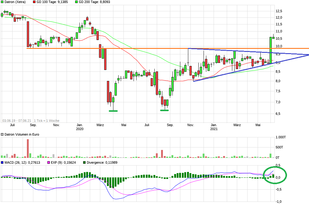 Chart sieht auch deutlich bullisher aus, nachdem man den bereich 9,8-9,9 € überwunden hat. Kurzfristig sollte man Platz bis 11,6 € haben, bis Jahresende in den Bereich 14,0-14,5 €.