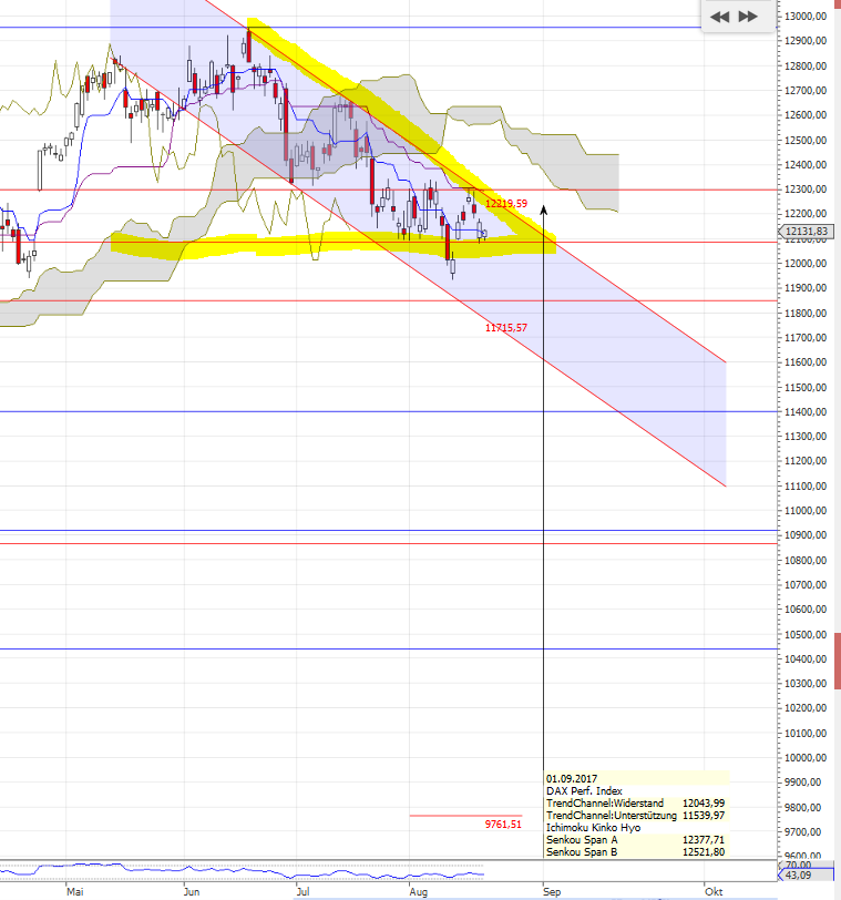 Manche hoffen nun auf schlechte Nachrichte­n, die den DAX weiter unter Druck setzen, um dann Mitte September günstiger einkaufen zu können. Die Nervosität­ ist groß. Der VDAX stieg in den letzten 4 Wochen um 40%.