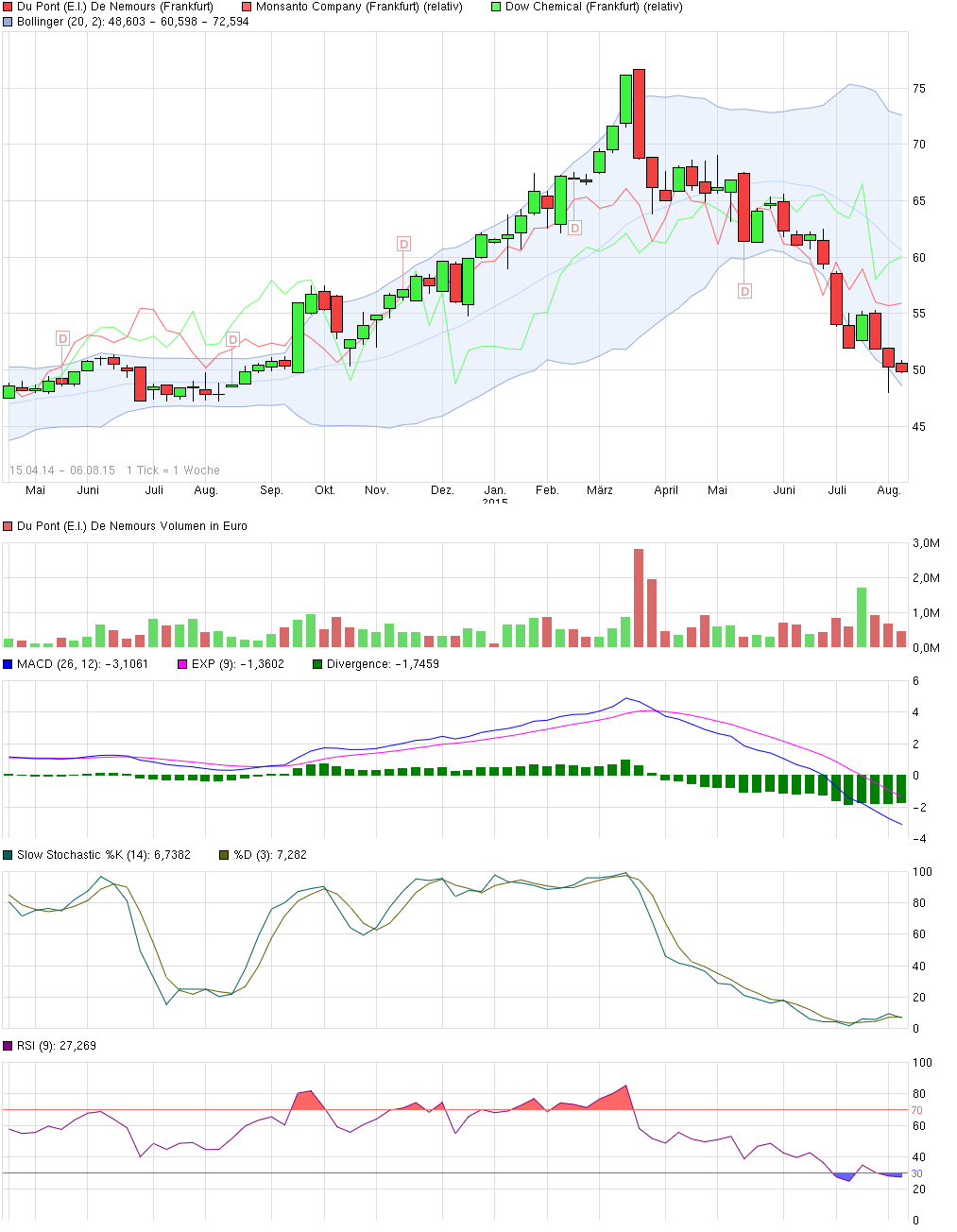 Nelson Peltz ist kein Gewinn für das Unternehmen. Die von ihm geweckten Erwartungen der Abspaltung haben zu dem Anstieg der Aktie im vergangenen Jahr geführt und der Absturz der Aktie in den letzten Monaten ist auch mit dem Scheitern dieser Pläne zu begründen. (Neben dem starken Dollar). Grundsätzlich halte ich E.I. DuPont de Nemours für interessant, weil man in Zukunftsmärkten unterwegs ist, nicht nur im Bereich Ernährung.