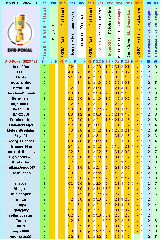Und die Auswertungen zur vorherigen Pokal-Runde gab es ja ab dort: