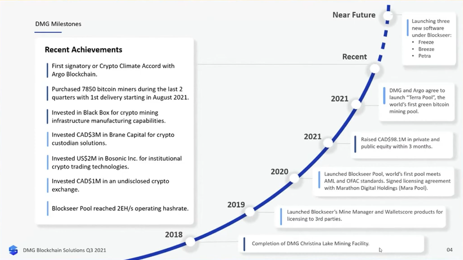 Ich empfehle euch auch für DMG Blockchain Solutions Inc. den Channel von "Blonity". Hier werden regelmäßig die bekannten Mining-Unternehmen, auch DMG, hinsichtlich der Mining-Kapazitäten sowie den damit verbundenen Einnahmen durchleuchtet.