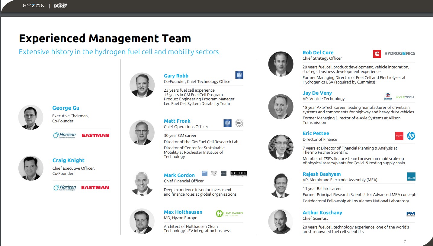 Ein Problem sehe ich in den geteilten Patenten bzw. in der Patentinhaberschaft durch Horizon für die Brennstoffzellen, d.h. die Verfügungsgewalt über die IP des Kerns des Unternehmens durch Hyzon ist fraglich. Evtl. Patentstreitigkeiten sind denkbar und werden von Hyzon als mögliches Risiko für Anleger in der Präsentation genannt.