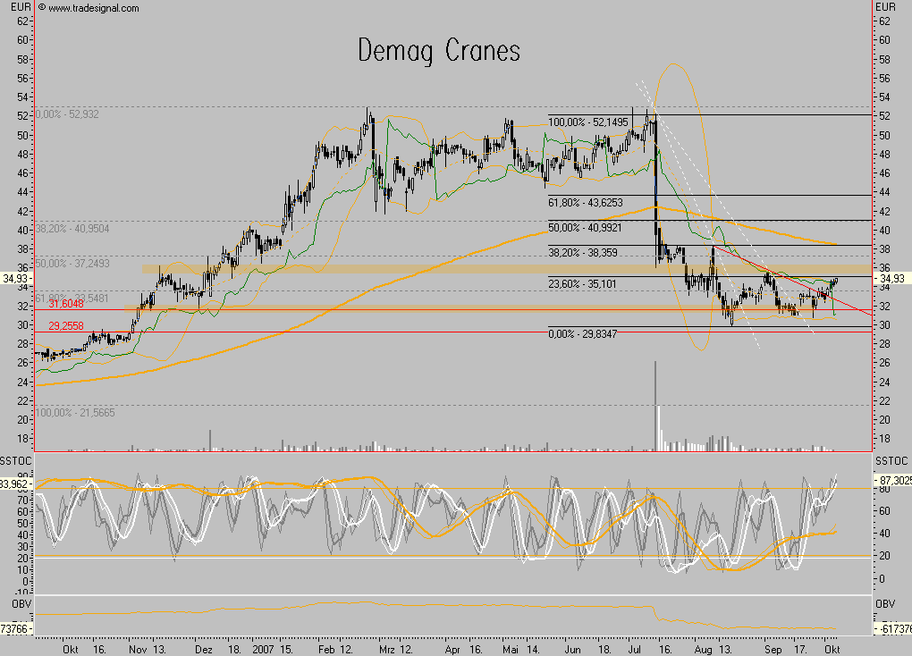 da der kurs bereits bei 35 euro wieder stand ging es erstmals wieder richung 31 euro, jetzt zeichnet sich doch auch ab dass demag mit dem trend wieder mithalten kann und auch immer hin nun wieder richung 35 euro gedreht hat, und nun doch langsam die anzeichen für bessere kurse gegeben sind, insbesondere wenn es wieder über die 35 gehen sollte.