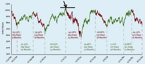 The 1966-82 experience says we may be in for violent moves down and rapid blastoffs